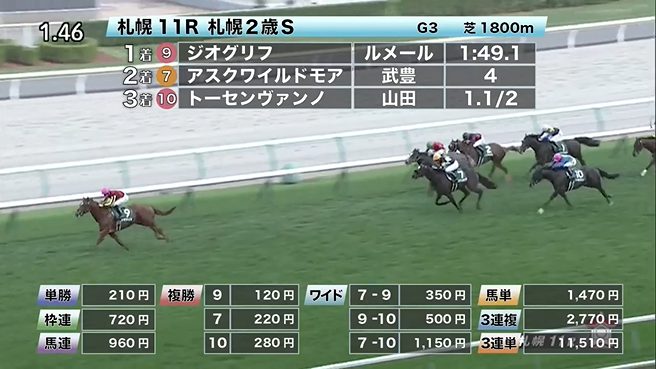 ◎クリオズナ(9人気)2着 複勝790円 - 9/4【札幌11R】札幌2歳ステークス