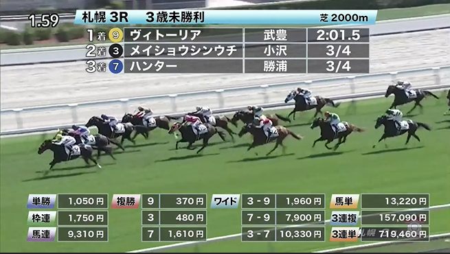 ◎トーセンヴァンノ(5人気)3着 複勝280円 - 9/4【札幌12R】日高ステークス