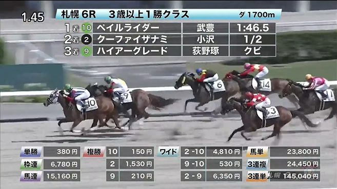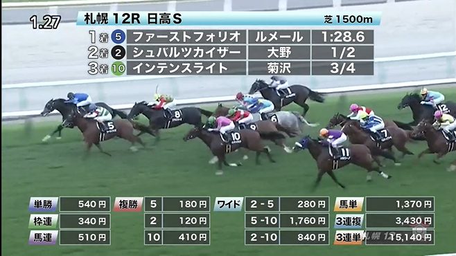 | 9/4 札幌 | 12R | 5R | 41.7% |