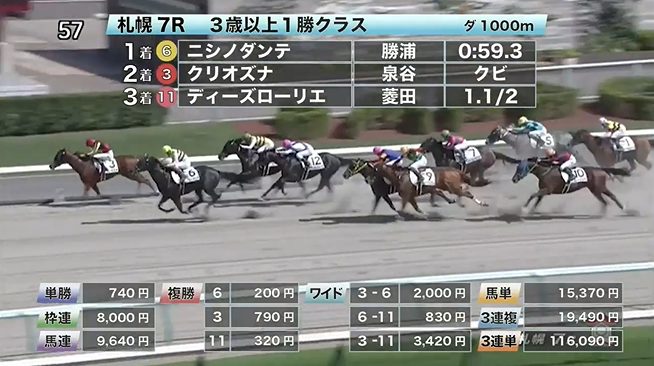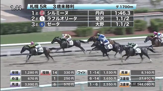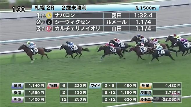 ◎ナバロン(5人気)1着 単勝1,140円、複勝220円 - 9/5【札幌3R】3歳未勝利