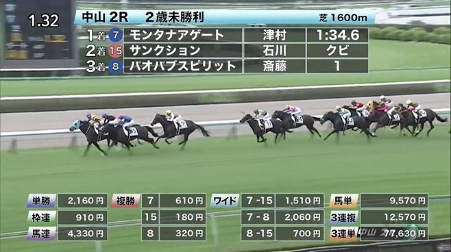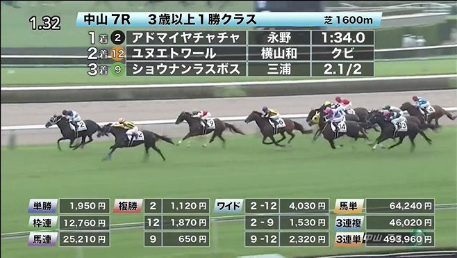 ◎ユヌエトワール(7人気)2着 複勝1,870円 - 9/12【中山9R】3歳以上1勝クラス