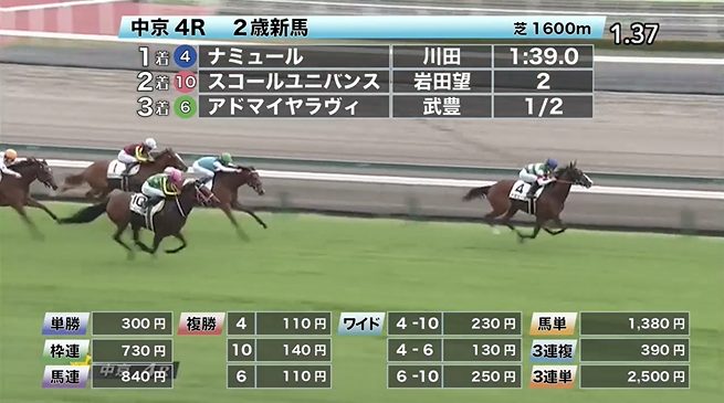 ◎ナムラクレア(4人気)1着 単勝640円、複勝210円