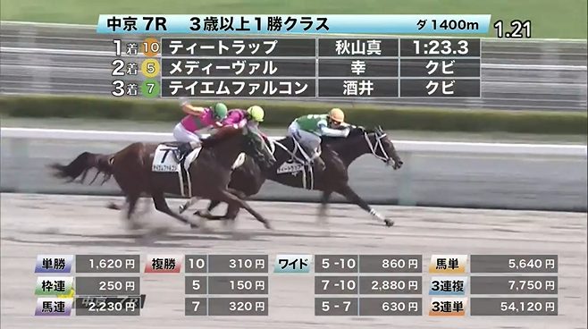 ◎ティートラップ(6人気)1着 単勝1,620円、複勝310円