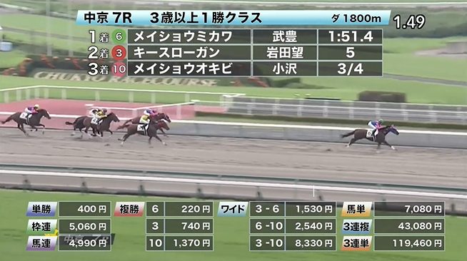 ◎キースローガン(8人気)2着 複勝740円 - 9/12【中京8R】3歳以上2勝クラス