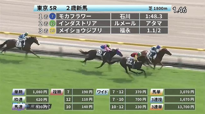 ◎モカフラワー(4人気)1着 単勝1,080円、複勝190円 - 10/9【東京6R】2歳新馬