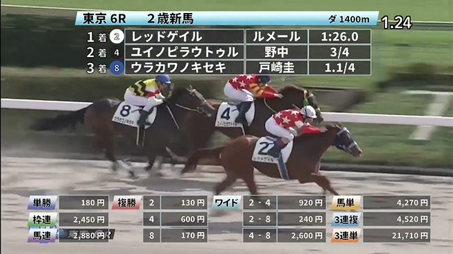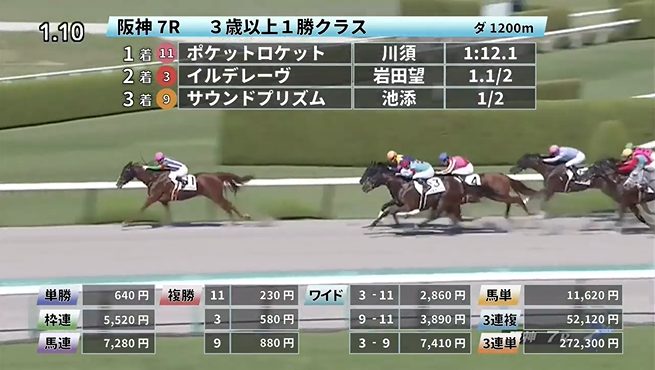 ◎ポケットロケット(3人気)1着 単勝640円、複勝230円