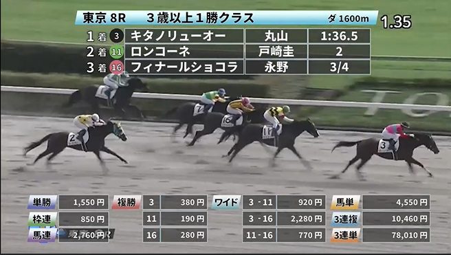 ◎キタノリューオー(7人気)1着 単勝1,550円、複勝380円