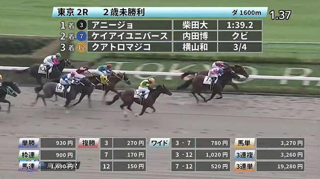 ◎アニージョ(5人気)1着 単勝930円、複勝270円