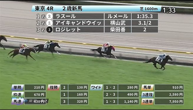 ◎ロジレット(5人気)3着 複勝320円 - 10/10【東京5R】2歳新馬