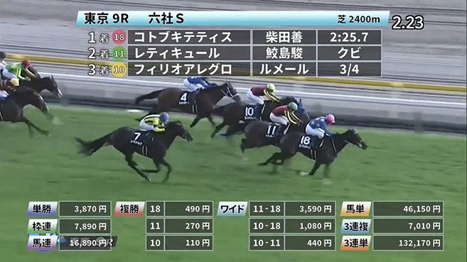◎コトブキテティス(7人気)1着 単勝3,870円、複勝490円