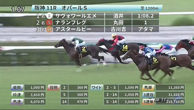 ◎サヴォワールエメ(3人気)1着 単勝1,000円、複勝360円