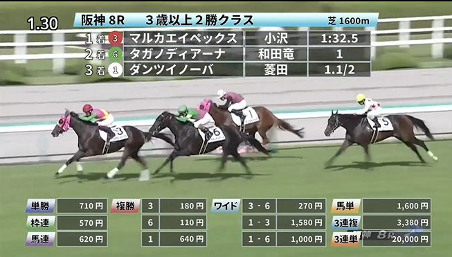 ◎マルカエイペックス(4人気)1着 単勝710円、複勝180円