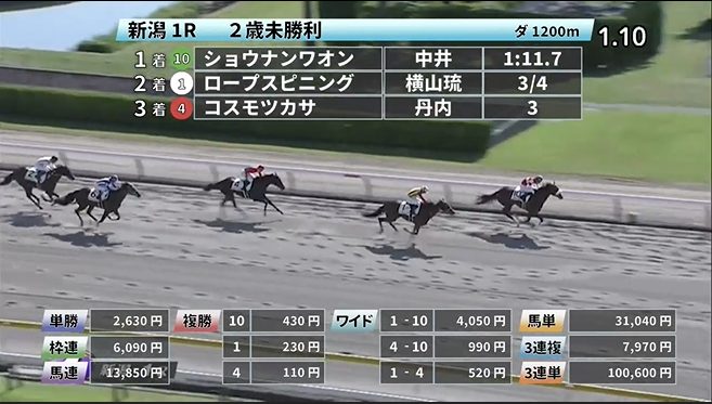 ◎ロープスピニング(4人気)2着 複勝230円 - 10/10【新潟5R】2歳新馬