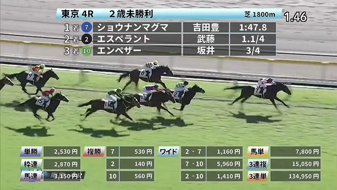 ◎ショウナンマグマ(6人気)1着 単勝2,530円、複勝530円