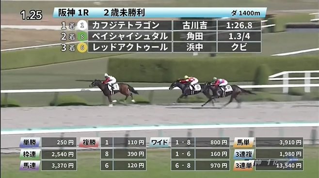 ◎ダノンファスト(6人気)1着 単勝1,400円、複勝490円