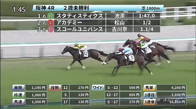 ◎スタティスティクス(5人気)1着 単勝1,190円、複勝270円 - 11/20【阪神5R】2歳新馬
