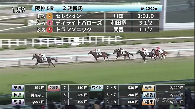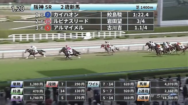 ◎オニャンコポン(4人気)1着 単勝710円、複勝140円 - 11/7【阪神5R】2歳新馬