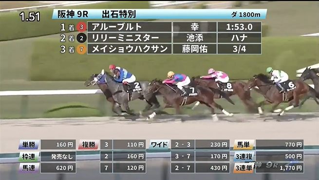 ◎アルマイメル(3人気)3着 複勝170円 - 11/20【阪神9R】出石特別