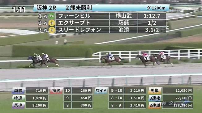 ◎シングフォーユー(6人気)2着 複勝200円 - 11/14【阪神1R】2歳未勝利