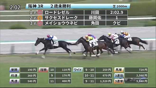 ◎ベルゼール(4人気)1着 単勝960円、複勝240円
