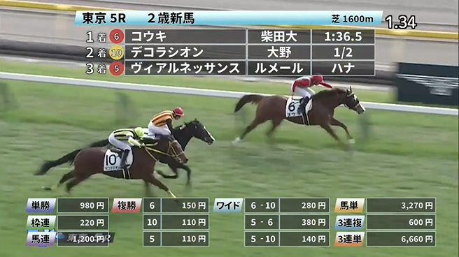 ◎コウキ(3人気)1着 単勝980円、複勝150円 - 11/27【東京6R】2歳新馬