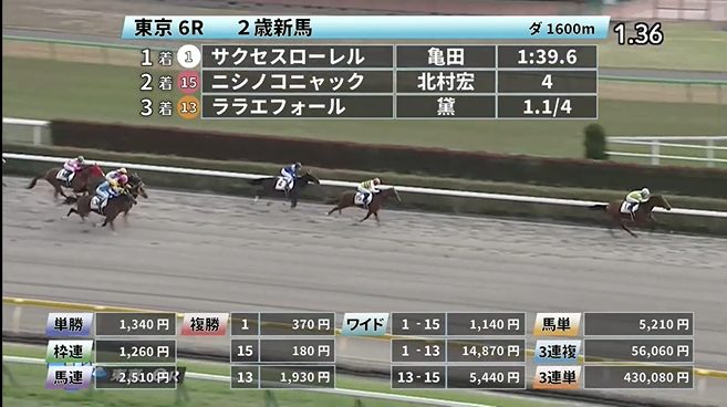 ◎サクセスローレル(6人気)1着 単勝1,340円、複勝370円 - 11/27【東京8R】3歳以上2勝クラス
