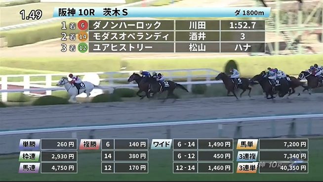 ◎トーホウデュラン(2人気)1着 単勝390円、複勝150円 - 11/28【阪神8R】3歳以上2勝クラス