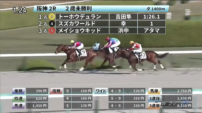 ◎トーホウデュラン(2人気)1着 単勝390円、複勝150円
