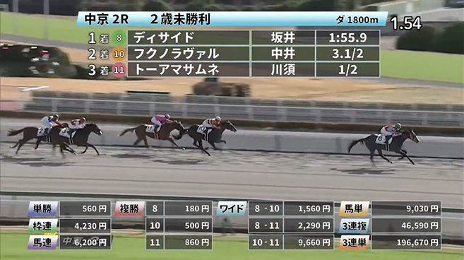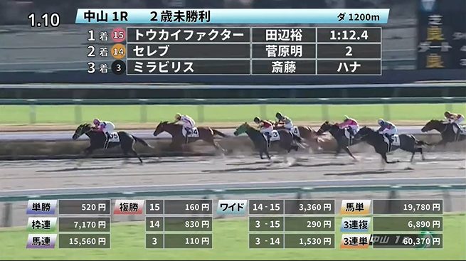 ◎トウカイファクター(2人気)1着 単勝520円、複勝160円 - 12/5【中山5R】2歳新馬