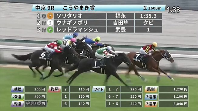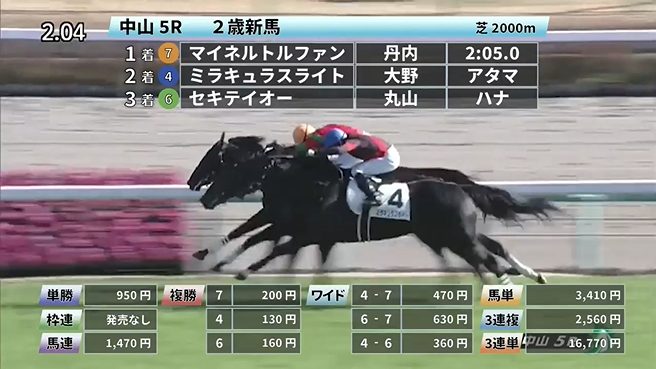 ◎マイネルトルファン(5人気)1着 単勝950円、複勝200円
