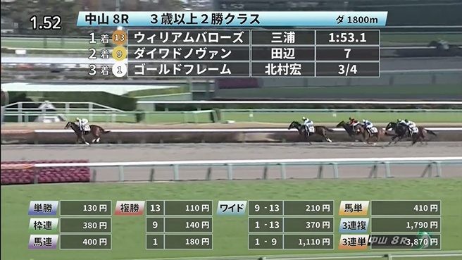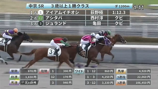 ◎アイアムイチオシ(3人気)1着 単勝870円、複勝300円