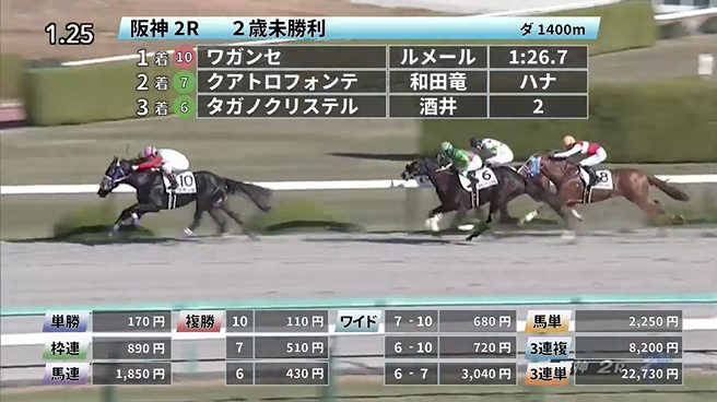 ◎タマノジュメイラ(5人気)1着 単勝870円、複勝190円