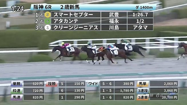 ◎クリーンジーニアス(6人気)3着 複勝290円