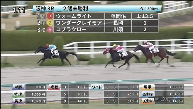 ◎ゴールドフレーム(4人気)3着 複勝180円 - 12/5【阪神3R】2歳未勝利