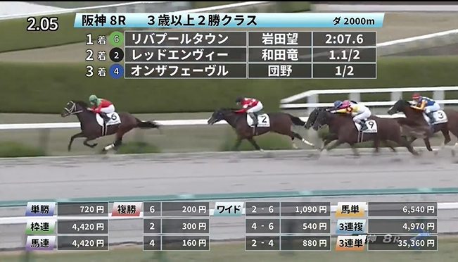 ◎リバプールタウン(5人気)1着 単勝720円、複勝200円 - 12/5【阪神12R】3歳以上2勝クラス