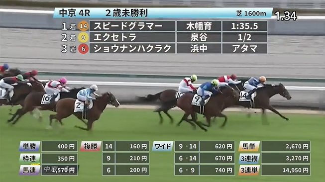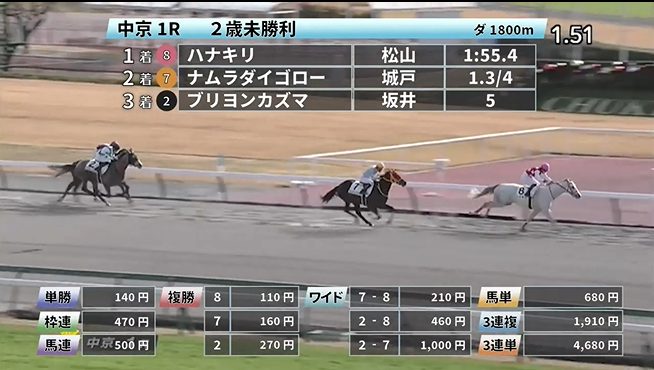 ◎ハクサンライラック(9人気)1着 単勝5,320円、複勝880円 - 12/4【中京4R】2歳未勝利