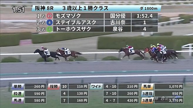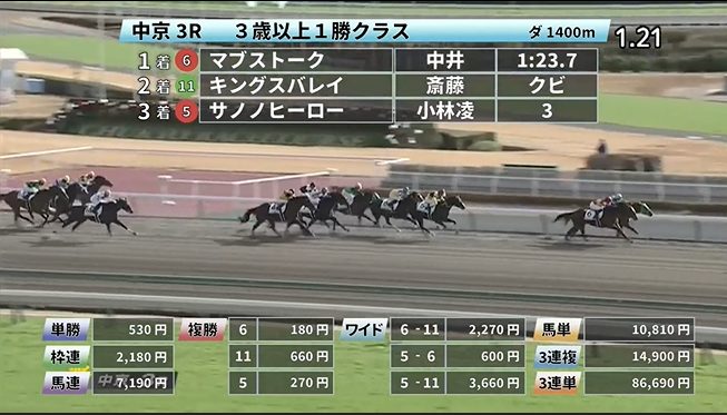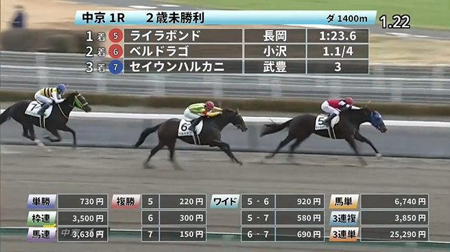 ◎ライラボンド(4人気)1着 単勝730円、複勝220円