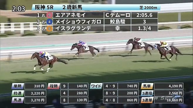 ◎アルムブラーヴ(9人気)3着 複勝620円 - 12/19【阪神5R】2歳新馬