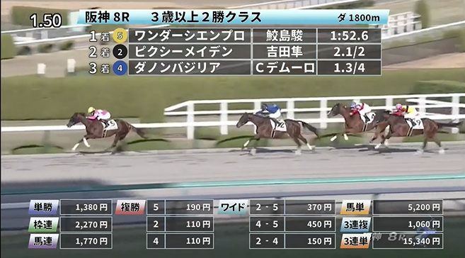 ◎ワンダーシエンプロ(6人気)1着 単勝1,380円、複勝190円