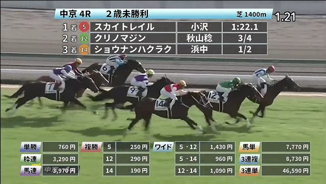 ◎スカイトレイル(4人気)1着 単勝760円、複勝250円