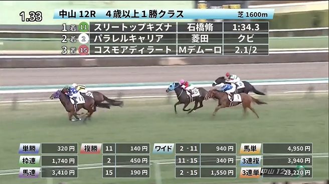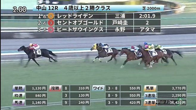 中山競馬の穴馬的中結果