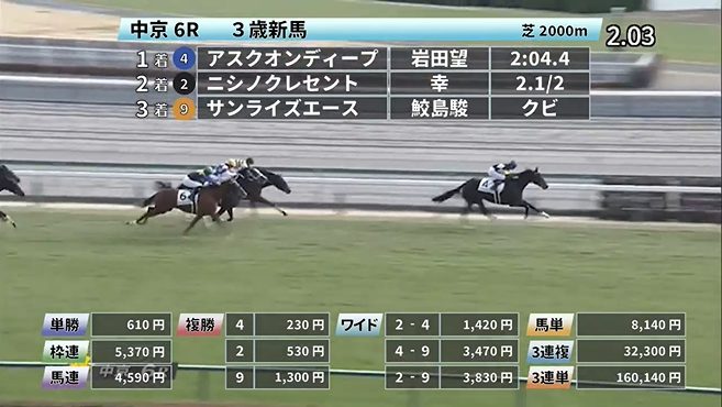 ◎ニシノクレセント(6人気)2着 複勝530円