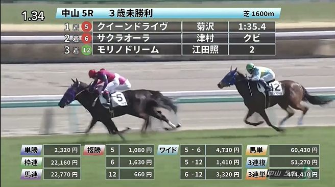 ◎クイーンドライヴ(6人気)1着 単勝2,320円、複勝1,080円
