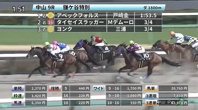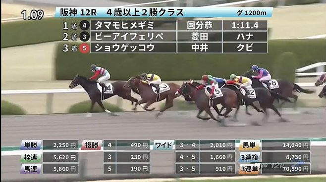◎ナランフレグ(8人気)1着 単勝2,780円、複勝660円