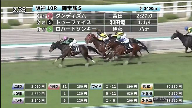 ◎ダンディズム(7人気)1着 単勝2,090円、複勝250円