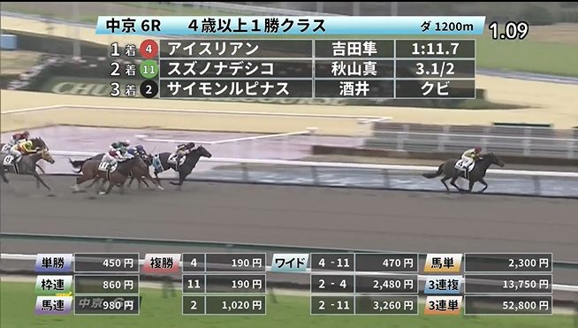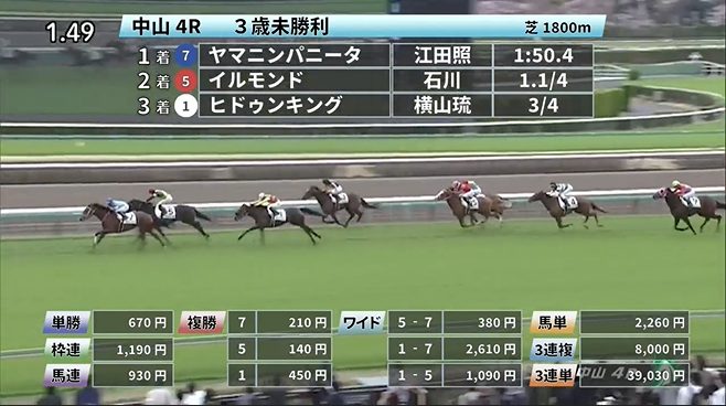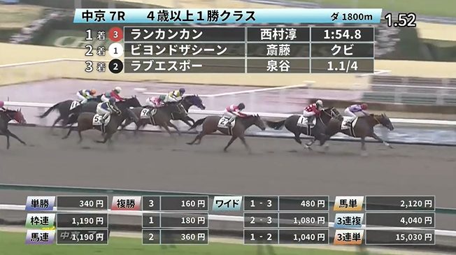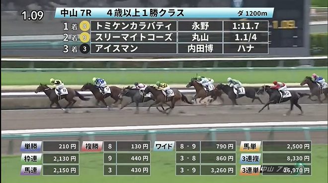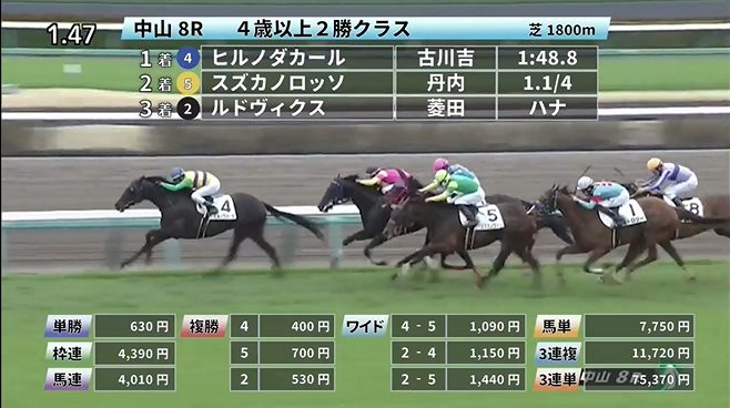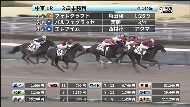◎ナランフレグ(8人気)1着 単勝2,780円、複勝660円