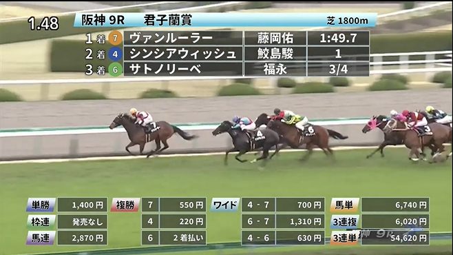 ◎ヴァンルーラー(6人気)1着 単勝1,400円、複勝550円 - 3/26【阪神12R】4歳以上1勝クラス