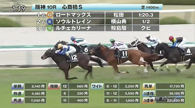 ◎ロードマックス(10人気)1着 単勝2,140円、複勝660円 - 4/3【阪神11R】大阪杯