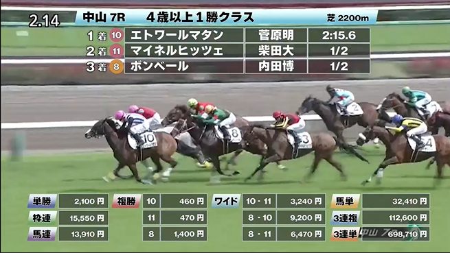◎エトワールマタン(6人気)1着 単勝2,100円、複勝460円