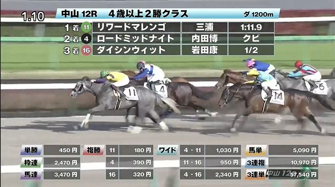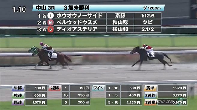 中山競馬の穴馬的中結果